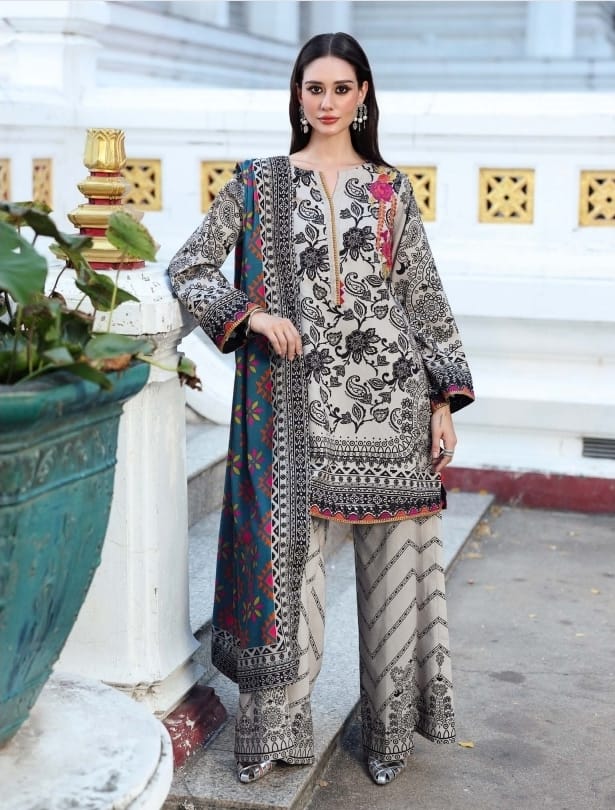Pakistani unstiched lawn 3ps with embroidary work Lawn dopatta