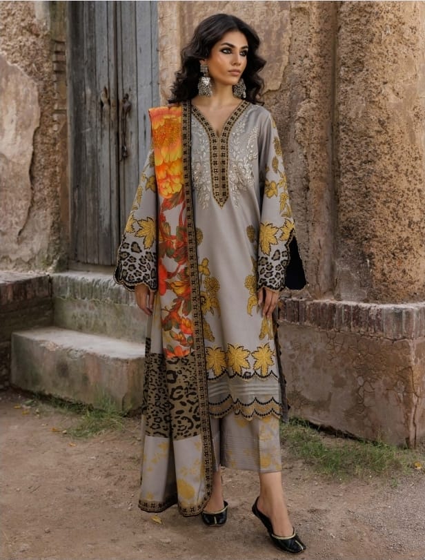 Pakistani unstiched lawn 3ps with embroidary work Lawn dopatta