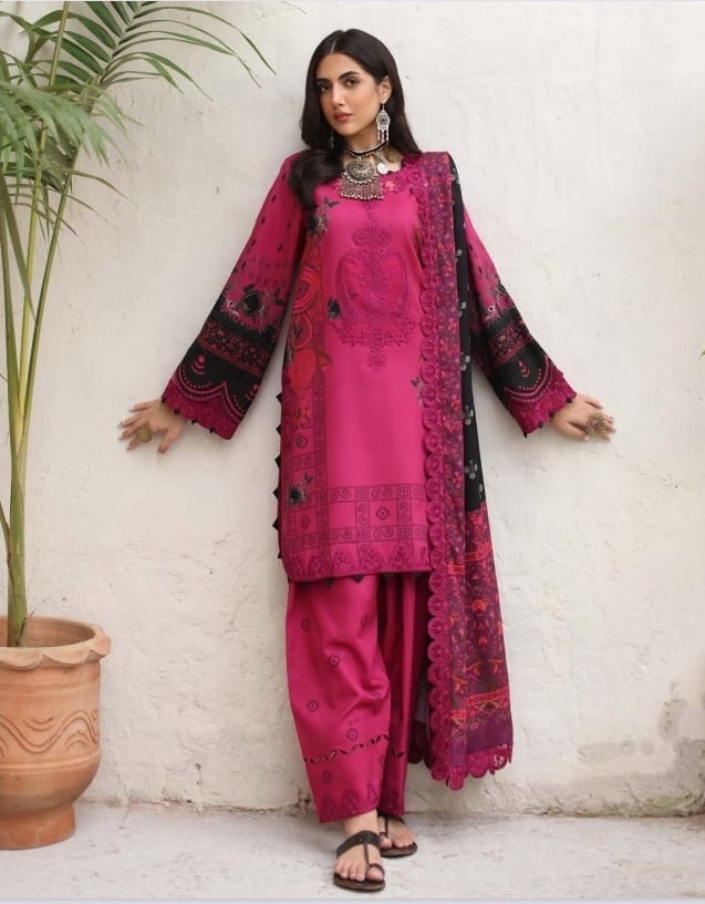 Pakistani unstiched lawn 3ps with embroidary work Lawn dopatta
