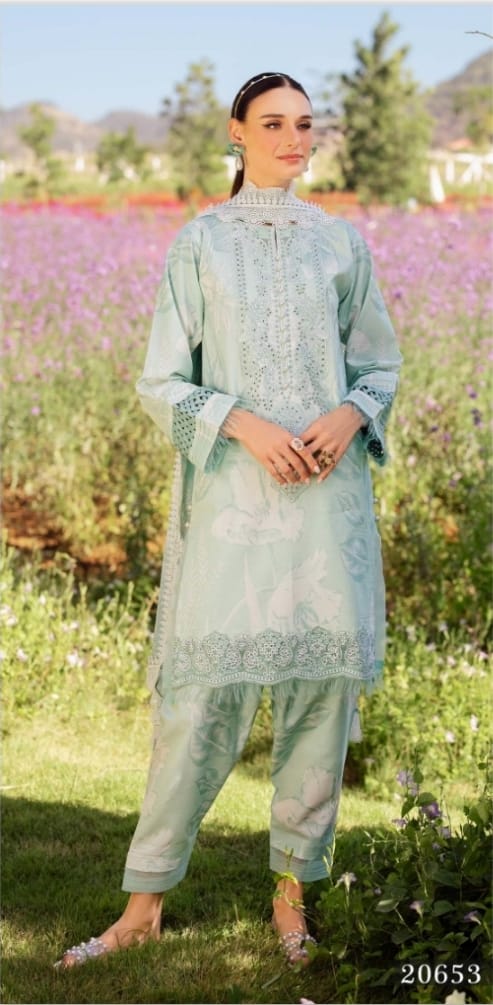 ✨Dress:3 Meter Digital Printed Chikan EMB Lawn Shirt