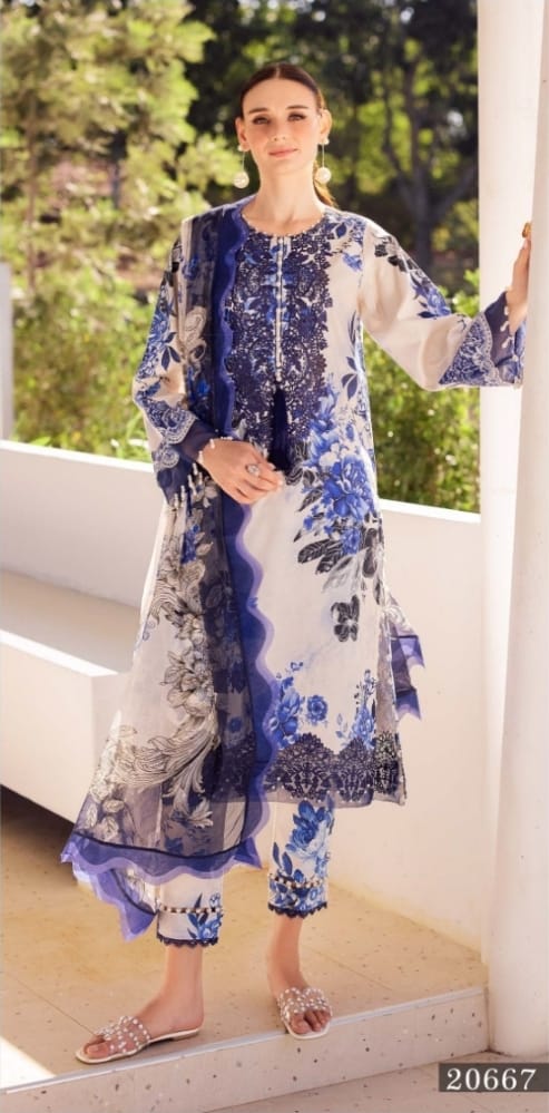 ✨Dress:3 Meter Digital Printed Chikan EMB Lawn Shirt