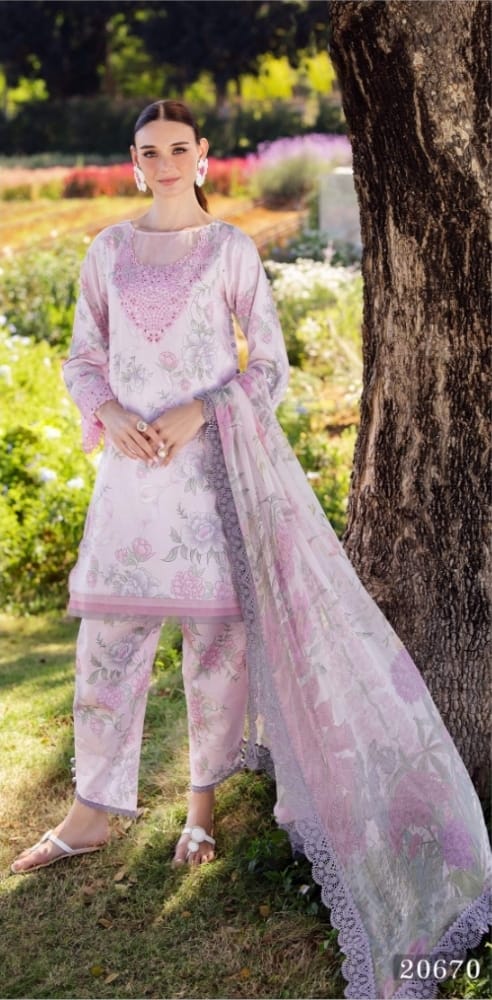 Pakistani unstiched lawn 3ps with chiffon dopatta