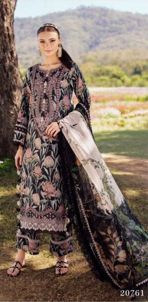 Pakistani unstiched lawn 3ps with chiffon dopatta