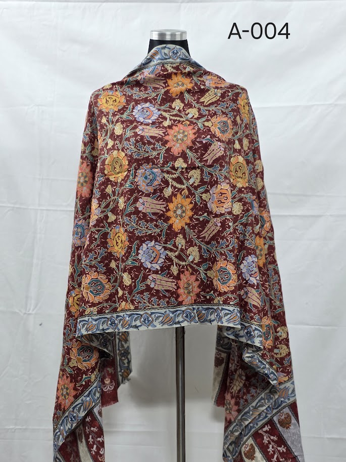 Kalamkari finewool Ladies shawl, Machine embroidary work, as like feather touch, size –30inch/82inch