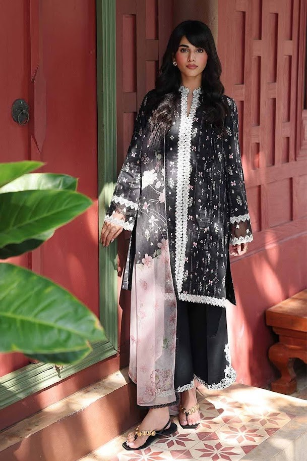 Pakistani unstiched lawn 3ps with embroidary work ,chiffon dopatta